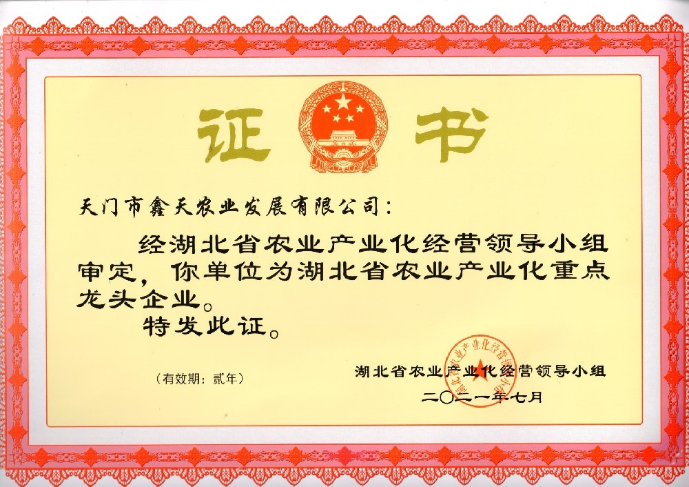 鑫天农业荣获湖北省农业产业化重点龙头企业(2021~2023)
